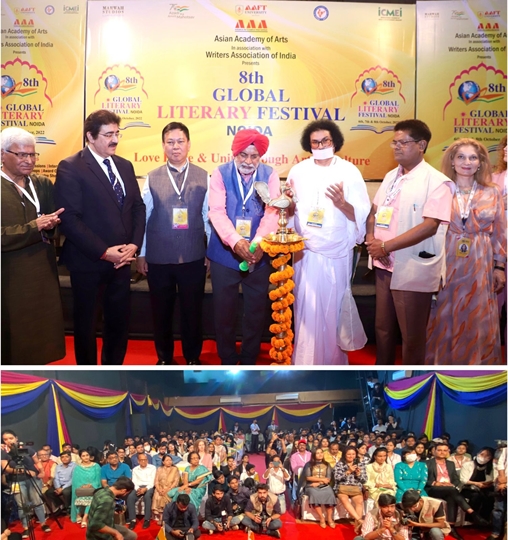 Noida: The City of Noida was bubbling with energy and enthusiasm. The excitement of the people could be seen in the well decorated campus of Marwah Studios where people were queuing up to enter the prestigious auditorium to be part of the grand event-The Inauguration of 8th Global Literature Festival 2022.