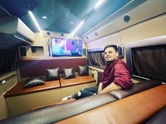 These Caravan comes with various amenities It has everything from a living room, a small bedroom, a kitchen, a bathroom, and a ‘terrace’ space on the roof of the vehicle. Guess what, you can also choose to post some live updates as the caravan comes equipped with WiFi too. They also provide a driver & cleaner.