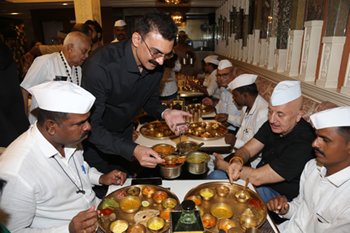 अभिनेते अनुपम खेर आणि शिवशास्त्री बल्बोआच्या टीमने मुंबई डब्बावाल्यांना भरभरून जेवण दिले, जे डब्बावाल्यांच्या चांगुलपणाचे प्रतीक आहे, जे संपूर्ण मुंबई शहराला अखंडपणे खाऊ घालतात.