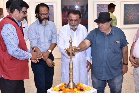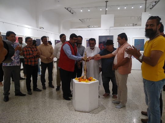 His exhibition at Jehangir Art Gallery, Gallery 3, titled Landscape of Identities was inaugurated by Padma Shri Sudharak Olwe, art collector Parvez Damania, playback singer Madhushree and her composer husband Robby Badal, actress Rupali Suri, celeb nutritionist Rusha Madhwani and director-egalitarian earth warrior Anusha Srinivasan Iyer, sculptor-curator Sanjay Nikam among others.