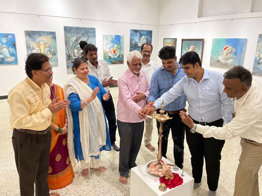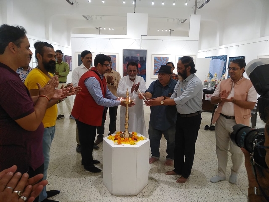 His exhibition at Jehangir Art Gallery, Gallery 3, titled Landscape of Identities was inaugurated by Padma Shri Sudharak Olwe, art collector Parvez Damania, playback singer Madhushree and her composer husband Robby Badal, actress Rupali Suri, celeb nutritionist Rusha Madhwani and director-egalitarian earth warrior Anusha Srinivasan Iyer, sculptor-curator Sanjay Nikam among others.